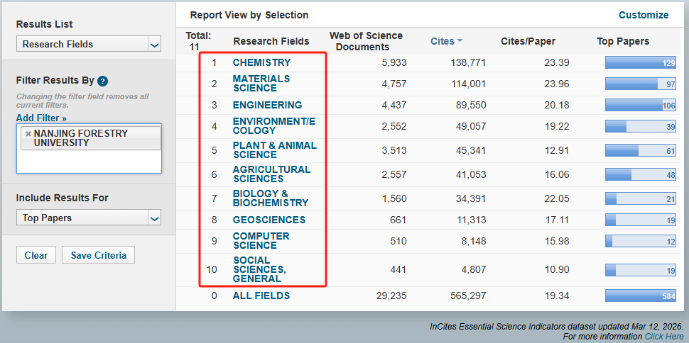 2026年3月12日,科睿唯安(ClarivateAnalytics,原汤森路透)ESI数据库进行了本年度第2次更新,本次更新数据统计覆盖范围为2015年1月到2025年12月。